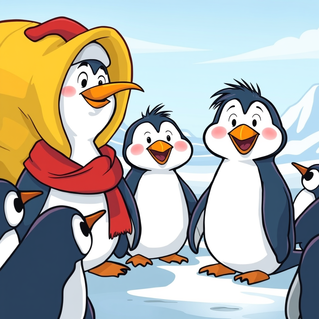 Da quel giorno, Pingu non solo volò, ma divenne un simbolo di speranza e unità per tutti i pinguini del villaggio.