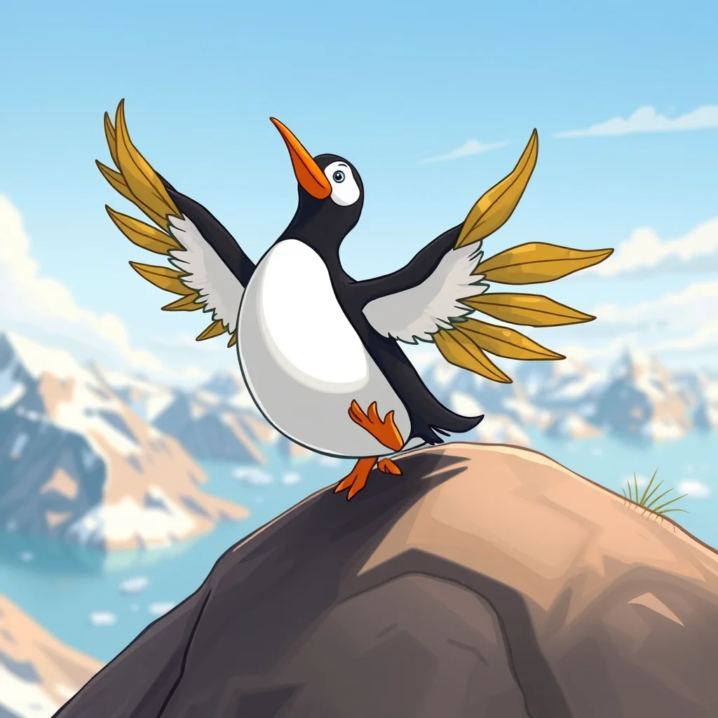 Con il cuore colmo di speranza, Pingu si arrampicò di nuovo sulla collina. Questa volta, non era solo. Sapeva che il suo sogno era condiviso con la sua comunità. Con un grande respiro, si lanciò di nuovo. Le ali si aprirono e, mentre il vento lo sollevava, Pingu si sentì libero. Non era solo un pinguino; era parte di qualcosa di più grande.